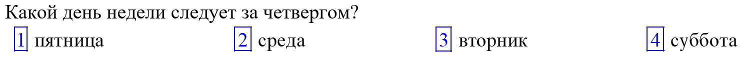 Тест 1002. Цепочка дней недели. Сравниваем числаДанный тест рассчитан на время, индивидуально установленное преподавателем. Тест автоматически завершится после ответа на все вопросы или нажатия на кнопку «Завершить тест» или по истечении отведённого времени. Постановка теста на паузу или повторное включение теста невозможно. Время на выполнение теста: 01:00 ч С учетом сложности задач можно набрать всего 10 балл.