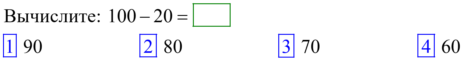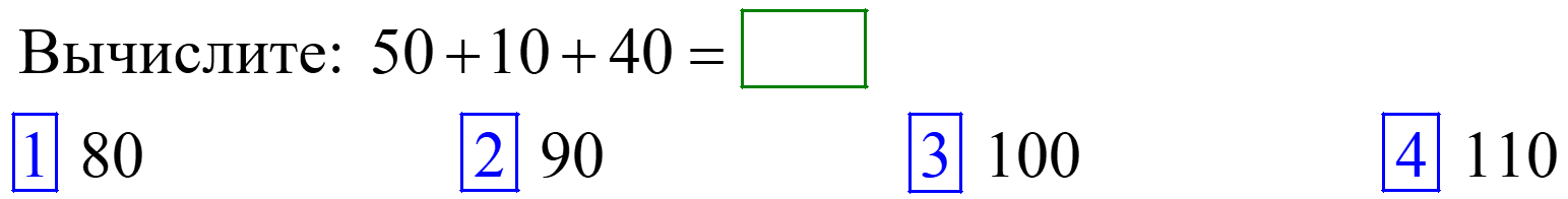 Тест 1052. Круглые числа от 10 до 100Данный тест рассчитан на время, индивидуально установленное преподавателем. Тест автоматически завершится после ответа на все вопросы или нажатия на кнопку «Завершить тест» или по истечении отведённого времени. Постановка теста на паузу или повторное включение теста невозможно. Время на выполнение теста: 01:00 ч С учетом сложности задач можно набрать всего 13 балл.